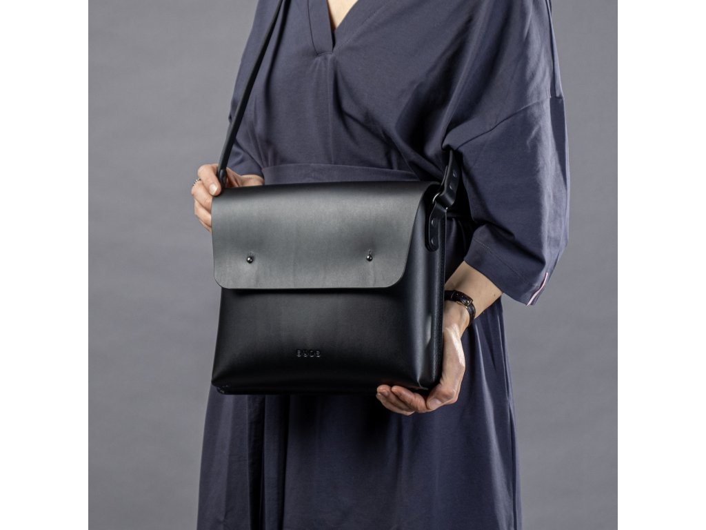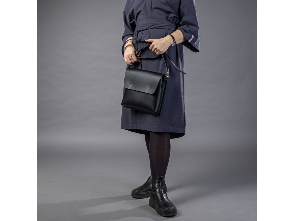 Kožená kabelka CUBO je alternativou k elegantnímu psaníčku, která nabízí více prostoru pro Vaše nezbytnosti. Uvnitř je navíc menší kapsička na telefon či peněženku a celkově kabelku zavírá klopa s dvěma sedlářskými knoflíky(pecky). Délka popruhu je nastavitelná v rozmezí 100 až 125 cm.